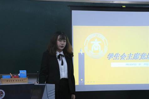 接下来,进入学生会主席的选举。候选人为卢钰涵和杨仕林。两位同学在竞选演讲中对自己的工作进行了总结,并对未来学生会的管理及沟通等方面提出了建议。演讲结束后,候选人互相进行提问并就具体问题给出详细解答。两位竞选者发言完毕,由工作人员分发选票,学生委员进行打分。