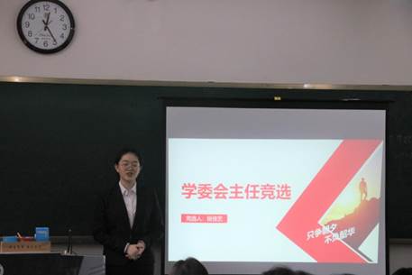随后,进行学委会主任的选举。学委会主任候选人段佳艺、韩木斯、张俊分别从自我介绍、能力经验、岗位理解、未来规划等方面发表演讲。演讲结束后,候选人相互提问并分别给出详细解答。在演讲和问答环节结束之后,学生委员代表对竞选者的表现进行打分。