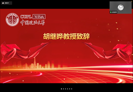 MBA教育中心副主任胡继晔教授为大会做开幕致辞。胡继晔教授鼓励同学们勇于承担社会责任,积极推动MBA各项活动开展,以赤诚炙热之心发扬法大MBA历届联合会的优良传统。同时,胡教授希望新一届联合会成员们能够努力开拓创新,为法大MBA的建设做出新的贡献,为同学们提供更好的服务,继往开来,创造法大MBA更加辉煌灿烂的篇章。