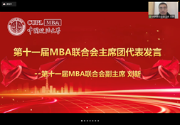随着大会进程的顺利推进,第十一届MBA联合会主席刘琦热情地分享了本届主席团的工作经历和经验,汇报了第十一届MBA联合会一年来组织的多场丰富多彩、具有意义的学生竞赛、实践参访及学习交流等活动,并对新一届联合会未来的工作给予了由衷的建议,同时表达了对新一届MBA联合会工作的美好期待和祝福。刘琦表示,未来在联合会需要的时候,第十一届MBA联合会成员们仍将不遗余力继续给予最大支持。接下来,第十一届MBA联合会副主席代表刘新对MBA联合会的“传承”精神做了深刻的解读,并结合自己作为主席团成员的经历和体会,与大家分享了他这一年来在联合会工作的诸多收获,以期让学弟学妹们更进一步地了解联合会对于同学们可能带来的积极影响。历届联合会通过不懈努力,已经将中国政法大学MBA联合会做成了在国内MBA项目中有相当影响力的学生组织。同时,刘新表示“路漫漫其修远兮,吾将上下而求索”,希望新一届联合会能够把中国政法大学MBA联合会的光辉火炬持续传承下去。