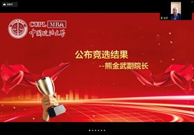 演讲及问答环节结束后,本着公平、公正、公开的原则,与会代表进行了匿名投票,由监票人刘新现场组织。经过两轮投票,大会产生了新一届MBA联合会主席。熊金武副院长宣读投票结果,宣布汪鑫强同学当选中国政法大学第十二届MBA联合会主席。
