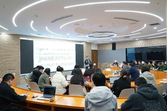 与谈环节,李超教授分享了自己到企业学习考察的经历,并号召同学们要积极投身于实践。胡继晔教授分享了自己在数字化经验方面的研究成果,启发同学们要多读书,读经典。世界经济学的两位同学向史教授请教了有关研究数据、变量选取等方面的内容;MBA的两位同学从实践角度向史宇鹏教授进行请教,并做亲切交流。