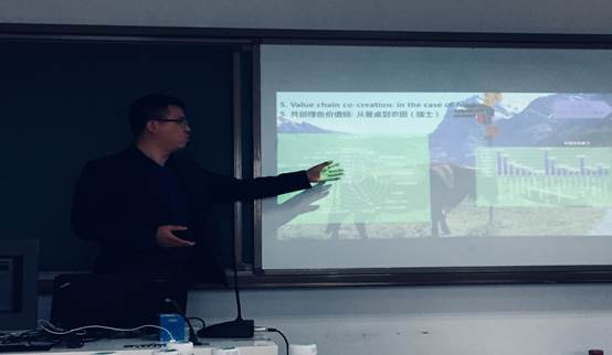 2017年10月27日星期五下午,上海环翼环境科技有限公司及产品生态设计与可持续供应链平台“一米一社区”的创办者兼CEO龚万彬先生,应邀走进葛建华教授的“环境经营与企业可持续发展”课堂,同时到场的还有中国包装总公司科技处许卫红处长、中瑞国际集团首席注册会计师孙兴华先生。中国人民大学以及天津大学的研究生也慕名特意赶来,与我校研究生共同听葛老师和三位专家分享“绿色产业链的价值共创体系”的精彩内容。