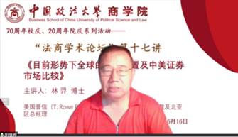 “法商学术论坛”第十七讲成功举办。本次讲座的主题是《目前形势下全球的资产配置及中美证券市场比较》,主讲嘉宾林羿博士。讲座由日本av