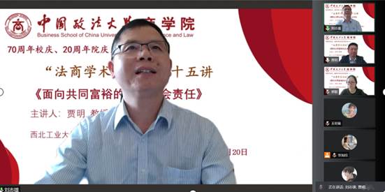 图2:“法商学术论坛”第十五期主讲嘉宾贾明教授