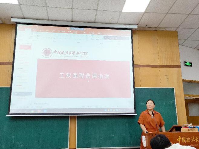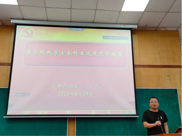 第二学士学位的培养方案及课程、考务安排,以及选课指南;双学士辅导员吴颖老师为大家介绍了相关的就业政策、学业管理、日常审批、安全教育和需要履行的相关手续。三位老师的介绍对于同学们接下来两年的学业和就业安排有着重要的意义。在这之后,党务办公室徐老师为大家介绍了党组织关系转接、党员发展、入党积极分子接续培养和预备党员转正等内容。