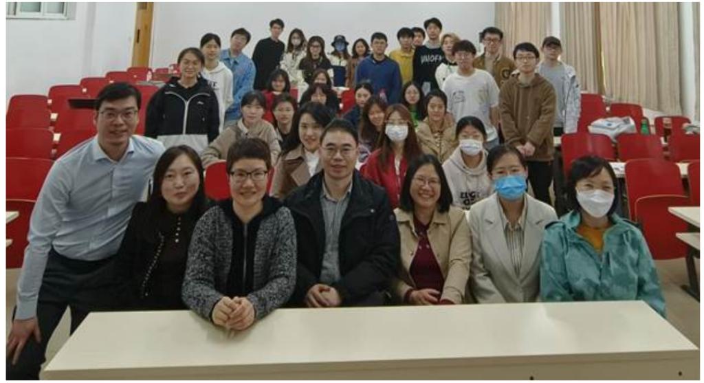 图:熊柴老师在“党的二十大和我的人生路”主题班会后与部分同学合影