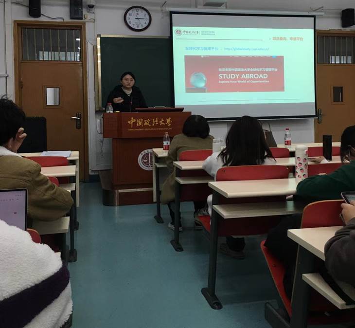 刘新萍侧重本科生国际化人才培养方面进行了讲解。她着重介绍了交换生项目、实习项目的申请与选拔程序、境外学习的管理、学分转换等教务问题,校内免费语言培训渠道,以及校内开设的国际课程对境外学习的帮助等学校本科国际化人才培养的管理与服务情况。