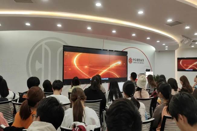 参观过各个展览区后,同学们来到专家讲堂区就座。本次讲堂以一部精彩的宣传片为开端,介绍了中信建投发展历程及其重大成就等。