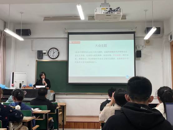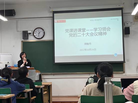 本科生专业必修课《政治经济学》的课堂,带领2022级国际商务专业的同学们共同学习领会“党的二十大精神”。