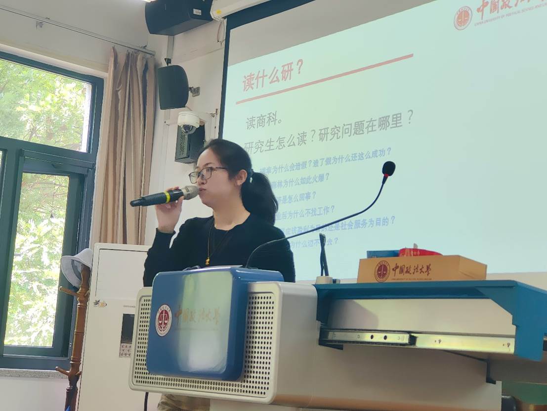 紧接着,作为从法大本科保研到会计专业的优秀研究生代表,2018级会计学硕士生钱晨同学分享了个人选择保研到本校的原因,并结合个人的经历和感悟对法大会计学专业的优势进行了介绍,并分享了一些考证和实习的经验。