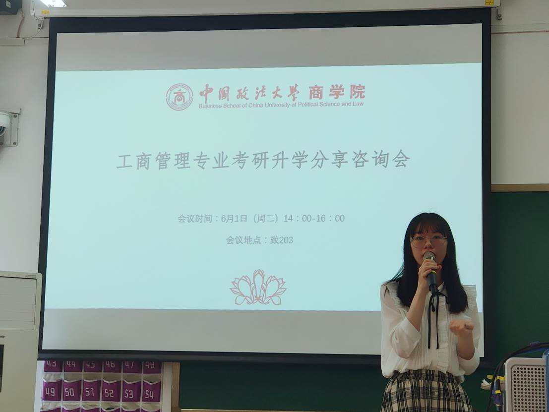 2021年6月1日下午,工商管理专业考研升学分享咨询会在昌平校区致公楼203教室顺利召开。参与分享会的有工商管理系主任郭颖老师、法商管理系副主任孟令星老师、财务会计系张美玲老师、企业管理系李璨老师、双学士辅导员贾娜琳捷老师、2018级辅导员郑益群老师、2018级会计学硕士生钱晨同学、2020级企业管理专业硕士生王明星同学以及2018级、2019级和2020级工商管理专业的在校本科生。