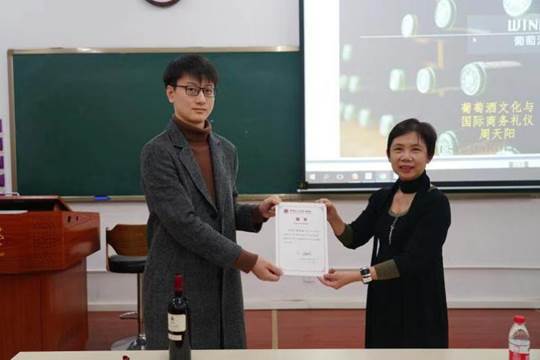 讲座结束后,周老师与参加讲座的师生合影,并与其指导的国商学生进行亲切交流。同学们纷纷表示,这次讲座开拓了大家在葡萄酒文化方面的视野,并表示在专业学习中会更重视理论与实践的结合,培养国际化视野,在品味葡萄酒的同时,更好地品味国际商务,为成为国际商务的一流人才而努力。