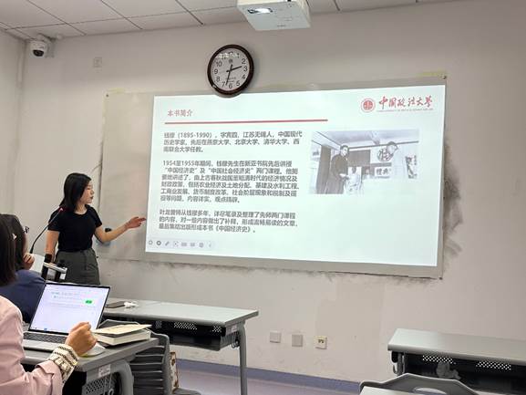 经济系、经济学党支部在图书综合楼0507教室成功举办了2023年第3期(总第46期)研究生读书会,阅读书目为钱穆先生的《中国经济史》。本次读书会由经济系、经济学党支部邓达老师、陈明生老师、黄立君老师、张弛老师、周敏丹老师和司海平老师共同指导,熊柴老师推荐书目并主持。2021级、2022级政治经济学、西方经济学专业全体研究生参加,2021级政治经济学专业李丹、陆辰英同学以及2022级政治经济学专业的贾文轩、张小乔同学作主报告。