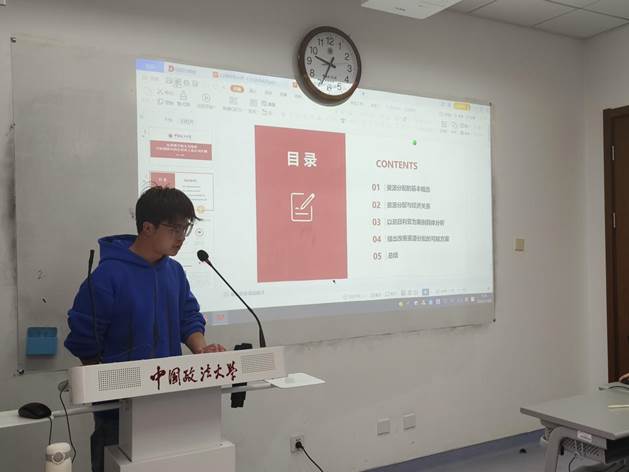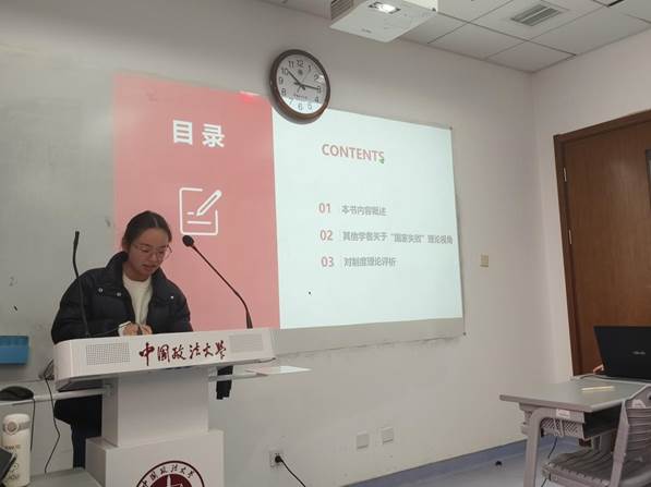 丁靖益同学从国家失败的理论视角及思考进行汇报,比较和评析了弗朗西斯·福山的“国家构建”理论和奥尔森的“分利集团”理论等其他学者对于世界不平等根源理论的观点,认为这些理论简化了国家失败的原因,忽略了制度因素的重要性。