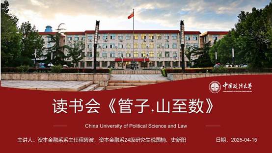 资本金融系及经济学党支部读书研讨会2025春季学期第三期读书会成功举行。本次读书会由资本金融系系主任程碧波主持,24级研究生税国楠、史新阳分别围绕“与西方经济学的比较”“对今天的启发”两大主题展开汇报,探讨了《管子·山至数》中“动态平衡、资源调控、立足本土”的核心思想在当代的实践价值。