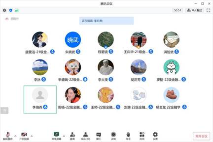 资本金融系在线上进行了资本金融系研究生新生见面会,参与会议的有程碧波系主任、MBA中心胡继晔副主任、李大夜副系主任、李泳教授、朱晓武教授、胡历芳副教授、李伯尧老师、刘彪老师、洪智武老师,以及21级金融学硕、专硕学生代表和22级金融系全体研究生。此次会议由程碧波主任主持。