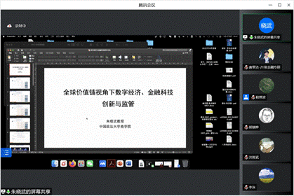 李泳教授、朱晓武教授也介绍了自己的主要研究方向,并欢迎感兴趣的同学加入研究团队。李泳教授主要研究金融风险、跨国投资等方面,主要通过计量经济学的方法,侧重于一带一路、内外循环等领域的研究;朱晓武教授的研究领域为金融科技、区块链、决策与信息管理等,并且提出在目前的数字经济大潮中应当持法商之道的利器,采取金融科技创新和企业运营优化的双轮驱动,在全球资本市场开拓新天地。