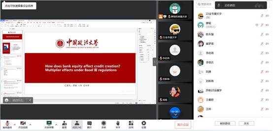 资本金融系第一期金融学读书研讨会通过腾讯会议在线上成功举行。参加本次读书研讨会的有李伯尧老师以及2022级金融专硕和学硕的同学,以李伯尧老师最新的研究成果How does bank equity affect credit creation? Multiplier effects under Basel Ⅲ regulations为研读文献,2022级金融专硕廖韬、夏天宇、王帅三位同学为本次读书会的主讲。