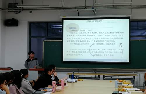 经济系和经济学党支部在新综合科研楼科地103教室成功举办2018年第4期研究生读书会。读书会由2017级政治经济学专业研究生关云博同学和经济系副主任、经济学党支部书记黄立君老师共同主持,经济系主任邓达老师,张弛、刘婷文、张毅来、支小青等老师共同指导。2017、2018级政治经济学和西方经济学专业16位同学以及2018级经济史专业的黄婷婷同学一起参加了本次读书及研讨活动。师生们共聚一堂,品读德隆·阿西莫格鲁和詹姆斯A·罗宾逊的《国家为什么会失败》。