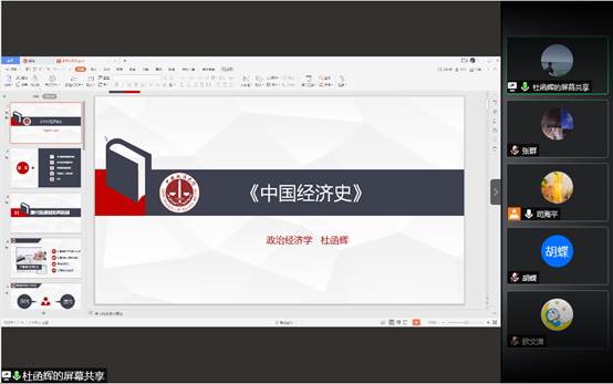 经济系、经济学党支部在线上成功举办了2020年第3期研究生读书会。本次读书会由经济系、经济学党支部邓达老师、黄立君老师、张弛老师、张毅来老师、周敏丹老师共同指导,司海平老师主持。2019级和2020级政治经济学、西方经济学专业的同学参加了本次读书会,大家一起研读了钱穆所著的《中国经济史》,并进行了交流与讨论。