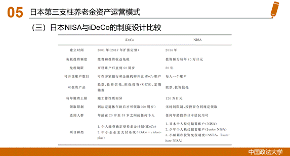 在养老金投资模式与监管的角度,刘悦同学以日本为例,分享其第三支柱养老金投资模式、监管方式以及对我国资本市场养老金投资管理的借鉴参考。首先,日本第三支柱养老金主要有iDeCo、NISA两种运营模式,有设计理念、税制等方面的差异。其次,在监管方面,二者的监管主体、法律、监管体系不同。最后,日本第三支柱养老金管理在制度设计、与资本市场有机统一等方面对我国养老金投资管理有深刻的借鉴意义。