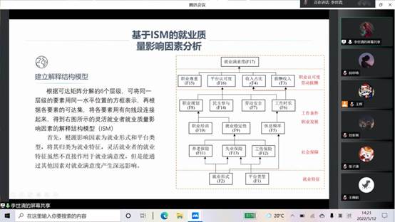 工商管理系组织与人力资源管理教研室于2022年5月12日14:00在腾讯会议线上召开第十期组织与人力资源管理学术研讨会,会议主题为“前沿论文导读与论文写作汇报”,由工商管理系王辉老师主持,李世清、张子潇两位同学进行论文写作汇报,罗佳敏同学进行前沿论文导读。组织与人力资源管理教研室王霆老师、顾凡老师、王尧老师、邓晓老师和学术研究生莫柠宁、王薇昭、林申琦、刘家祺出席。
