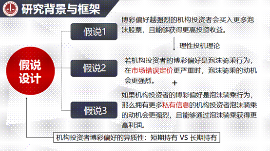 紧接着,宁晨君同学立足于股票市场上机构投资者确实具有泡沫骑乘的表现,对论文第一点假说的实证结果从总体分析、描述性统计以及实证检验等方面进行了详尽报告。从投资行为的角度看,博彩偏好强烈的机构投资者在高估股票前表现为继续买入而非逆向卖出;从后果方面看,机构投资者买入更多价格高估的泡沫股票的确能使其获得更高的投资收益;从获利的内在机制看,这些收益集中在彩票性质强烈的股票中,而彩票性越强的股票其价格存在泡沫的概率和程度也更高。