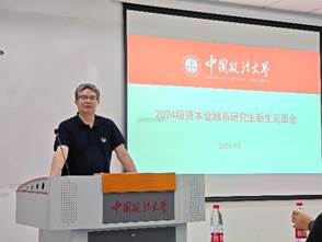会议伊始,熊金武教授首先强调了资本金融系优秀的办学经历,打破了过往对法学院校办商科的种种质疑,然后具体阐述了法大金融合理的培养方案和比较优势。熊金武教授以自身为例,讲述了自身的求学经历以及最终留在北京继续进行学习和研究的故事,鼓舞同学们珍惜这段宝贵的学习时光,努力提升自己的专业素养和综合能力。