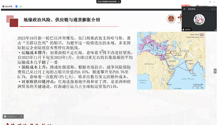 资本金融系2024年秋季学期第一期读书会通过线上会议的方式成功举行。洪智武老师和孙玉哲老师以及2024级资本金融系的同学参加了此次读书会。本期读书会以洪智武老师推荐的论文《地缘政治风险、供应链和通货膨胀》为主要的研讨内容,2024级金融专硕高梦晗、张楚瞳以及金融学学硕杨宇航三位同学为本次读书会进行了主题报告,并提出了对于文章部分内容的疑惑,洪智武老师和孙玉哲老师解答了问题并对本次报告进行了总结点评。