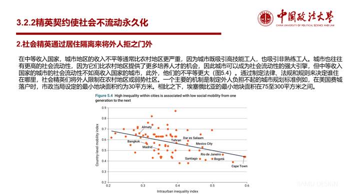 对于保护的力量,主要讨论的保护力量集中在不断增长的中等收入经济体的人才培养上,但也同样适用于企业和能源市场。首先强调了人才培养对于中等收入国家的重要性,引出中等收入国家的人才培养存在的问题。第一是中等收入国家存在的“精英契约”会妨碍社会流动,这是由于精英社交圈会限制圈外人的进入,父母辈将经济优势传给子女。此外,国家可能存在不同收入群体的居住隔离导致底层人民困在底层社区,即使在教育流动性改善的情况下职业流动性、居住地流动性也不一定改善。第二是父权社会规范对女性的歧视导致近半人口的潜力未被完全开发,这种歧视体现在教育、工作和金融上。