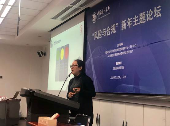 在正式的论坛分享环节,巴航(中国)飞机服务有限公司大中华区合规官赵云飞女士首先为大家带来精彩的演讲。演讲主题为“反舞弊审查在合规工作中的运用”,赵女士从自己的任职经历讲起,结合其实操中遇到的各种案例,将企业合规政策体系的各方面进行了详细的解读。