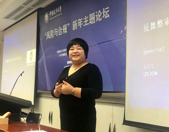 下午两点整,论坛准时开始。胡玉华女士作为开场嘉宾主持本次论坛,对到场的嘉宾、老师同学及线上的会员表示欢迎。胡玉华会长对美国注册舞弊检查师协会的情况做了介绍,并结合国内外与企业舞弊损失等有关的现实案例,说明风险控制与合规的重要性。